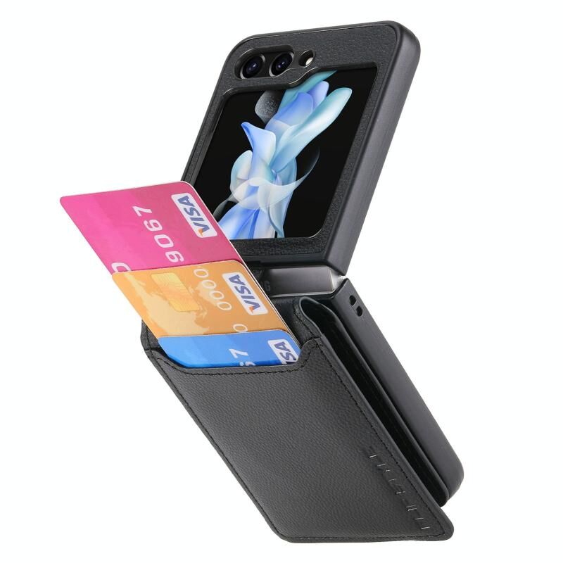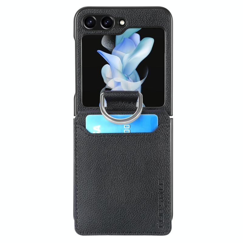 Για Samsung Galaxy Z Flip5 Litchi Υφή Δερμάτινο δαχτυλίδι Δακτύλιος θήκη πορτοφόλι τηλέφωνο (Μαύρο)