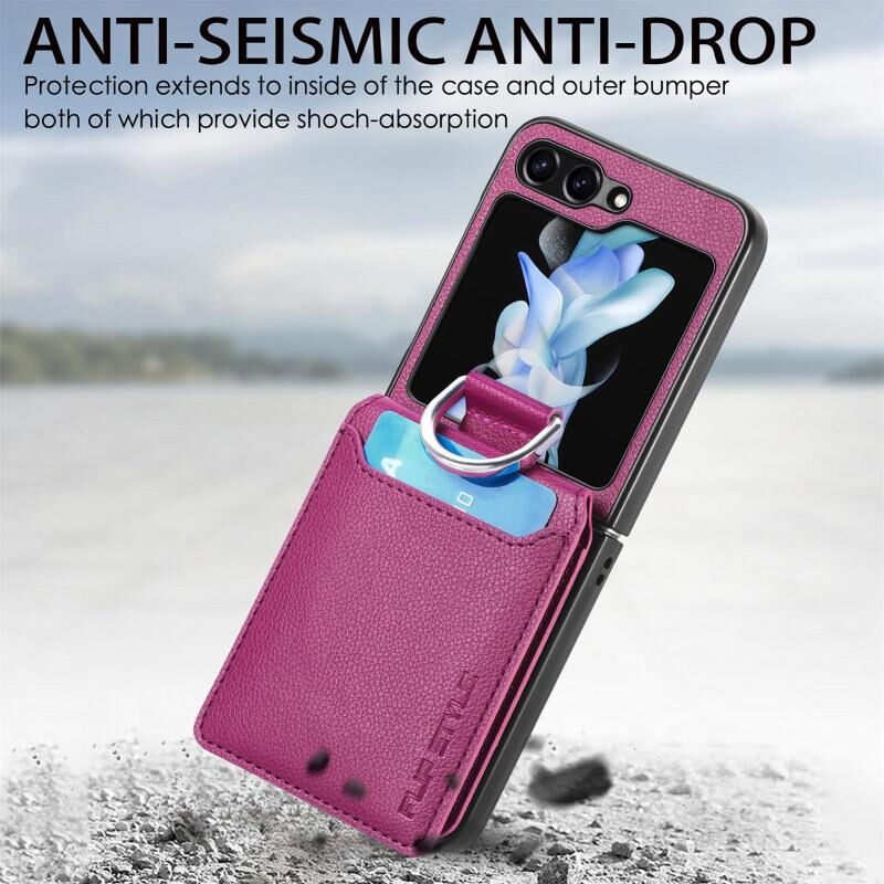 Για Samsung Galaxy Z Flip5 Litchi υφή δέρμα δαχτυλίδι δαχτυλίδι πορτοφόλι υπόθεση τηλεφώνου (μωβ)