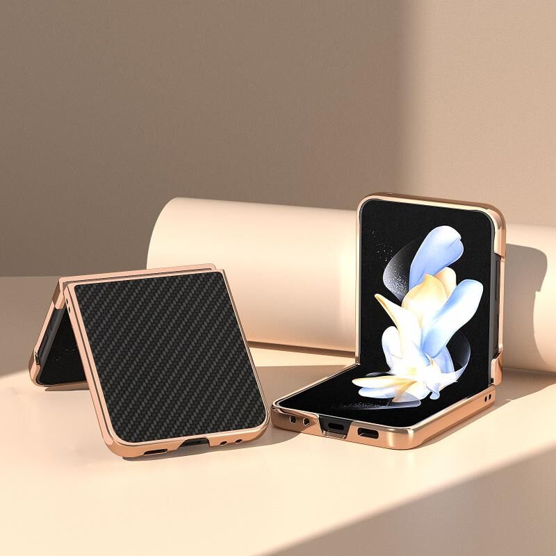 Για το Samsung Galaxy Z Flip5 Nano Electroplating Carbon Fiber Texture υπόθεση τηλεφώνου (μαύρο)