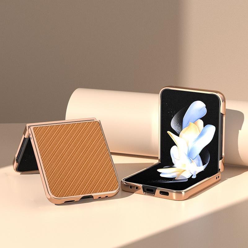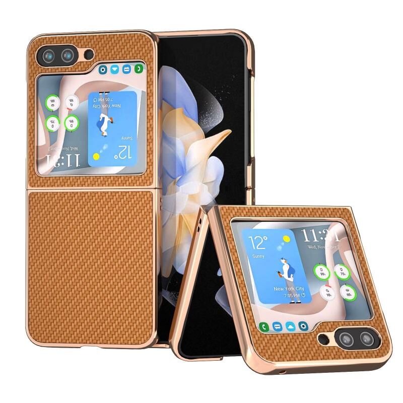 Για Samsung Galaxy Z Flip5 Nano Electroplating Carbon Fiber Υφή τηλέφωνο υπόθεση (καφέ)