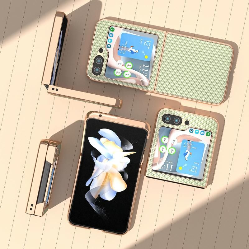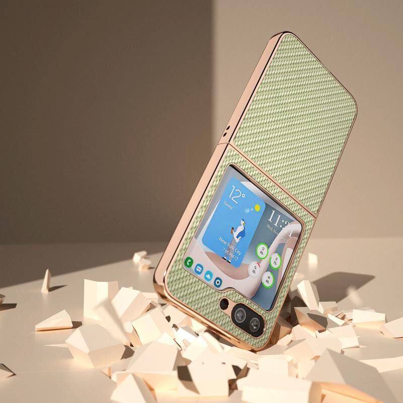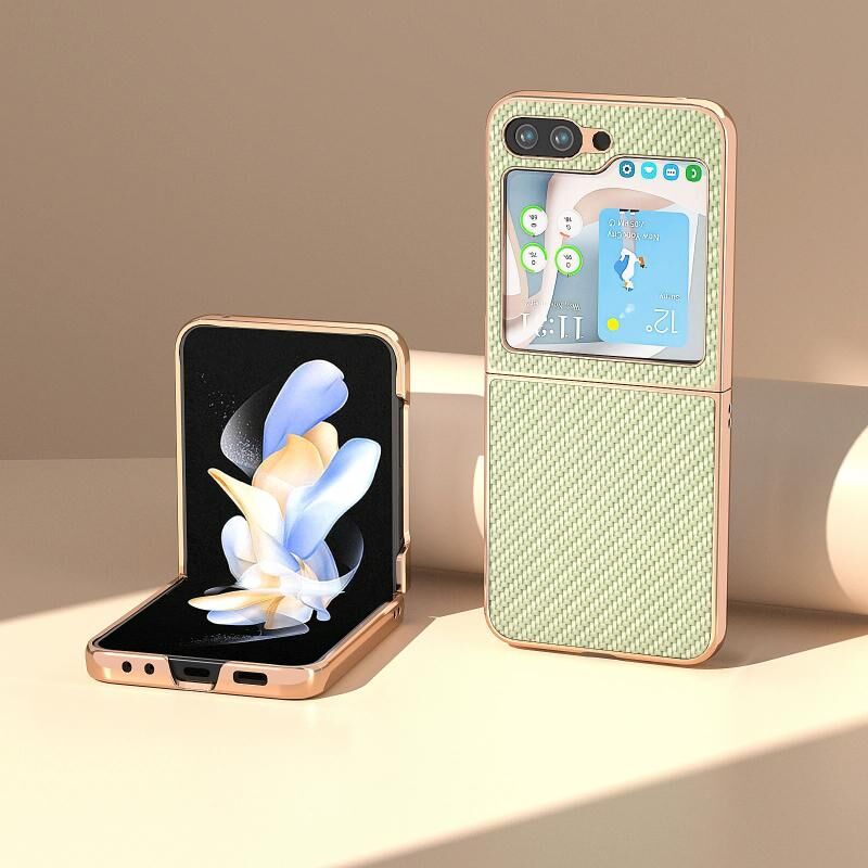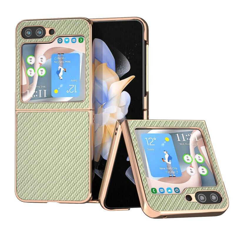 Για Samsung Galaxy Z Flip5 Nano Electroplating Carbon Fiber Υφή τηλέφωνο υπόθεση (πράσινο)