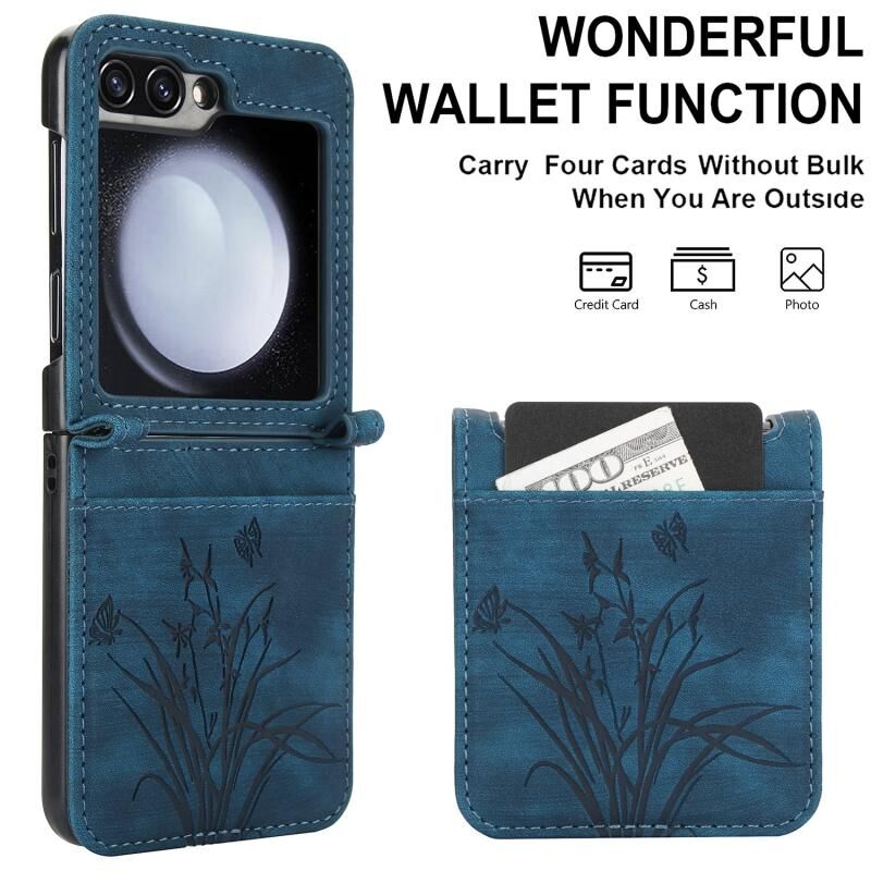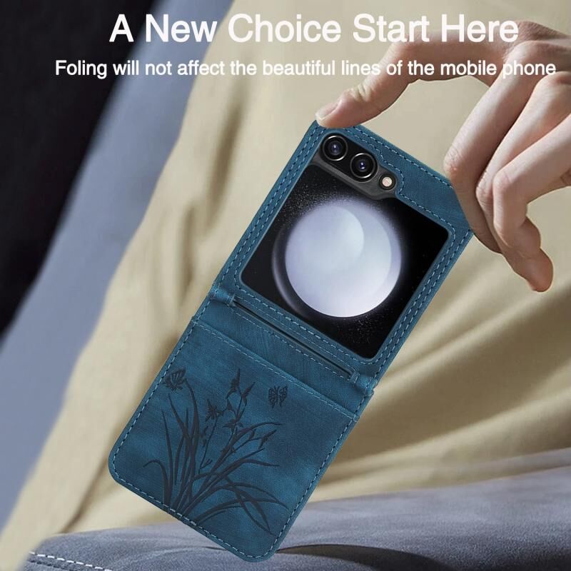 Θήκη τηλεφώνου Samsung Galaxy Z Flip5 Orchid Butterfly Embossed Leather (Πράσινη)