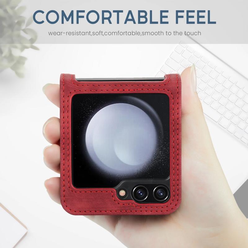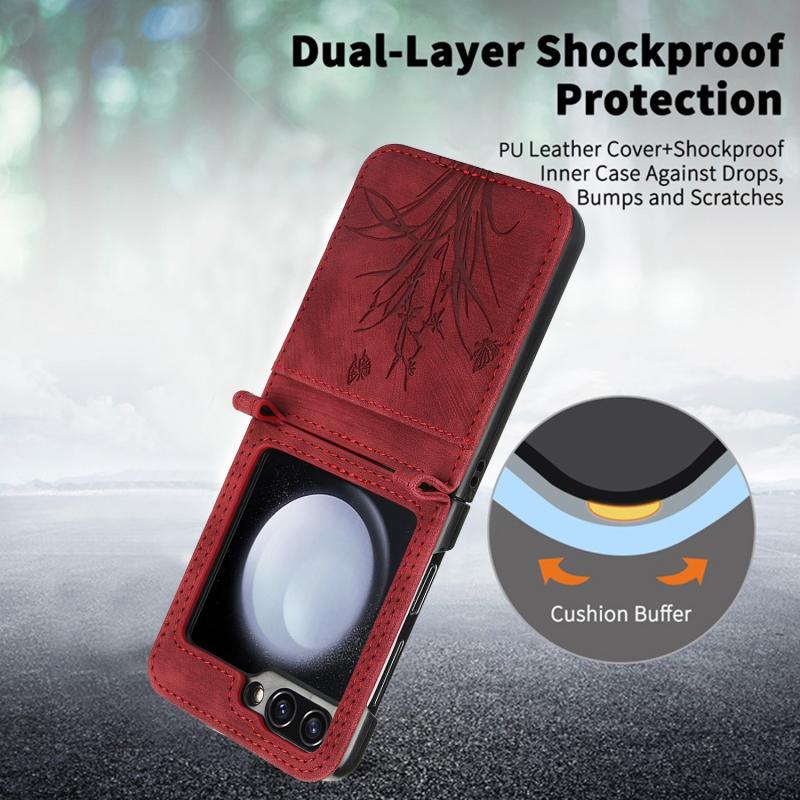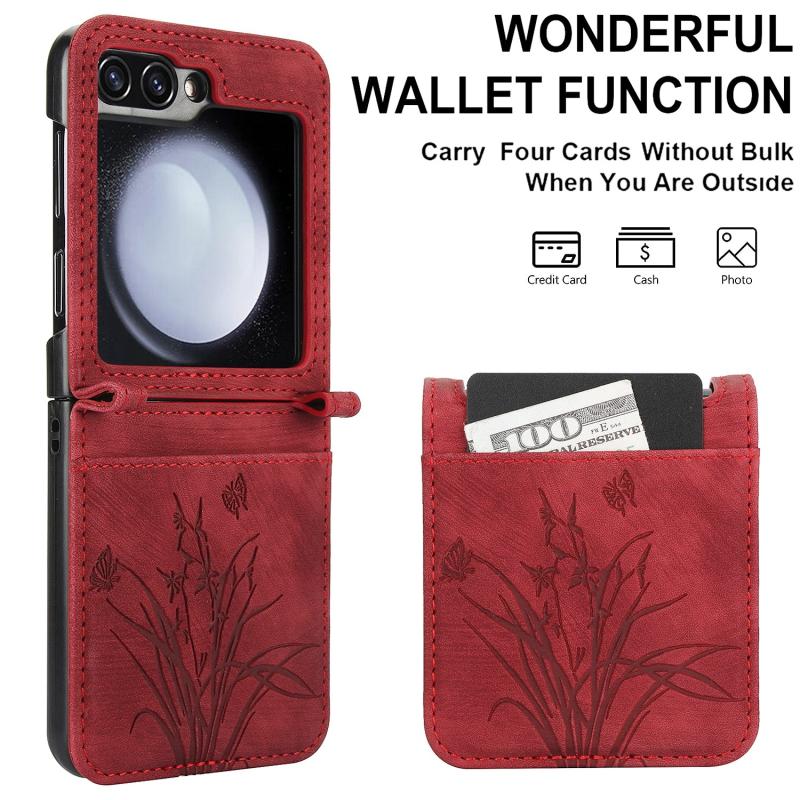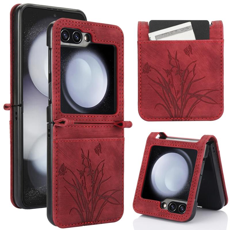 For Samsung Galaxy Z Flip5 Orchid Butterfly Embossed Leather Phone Case(Red)
