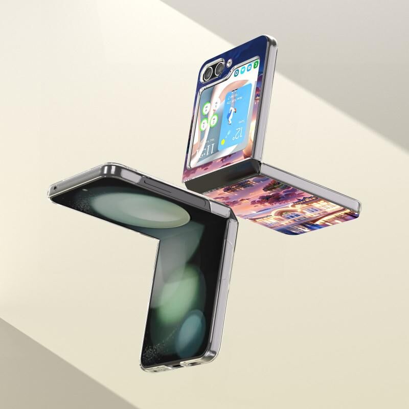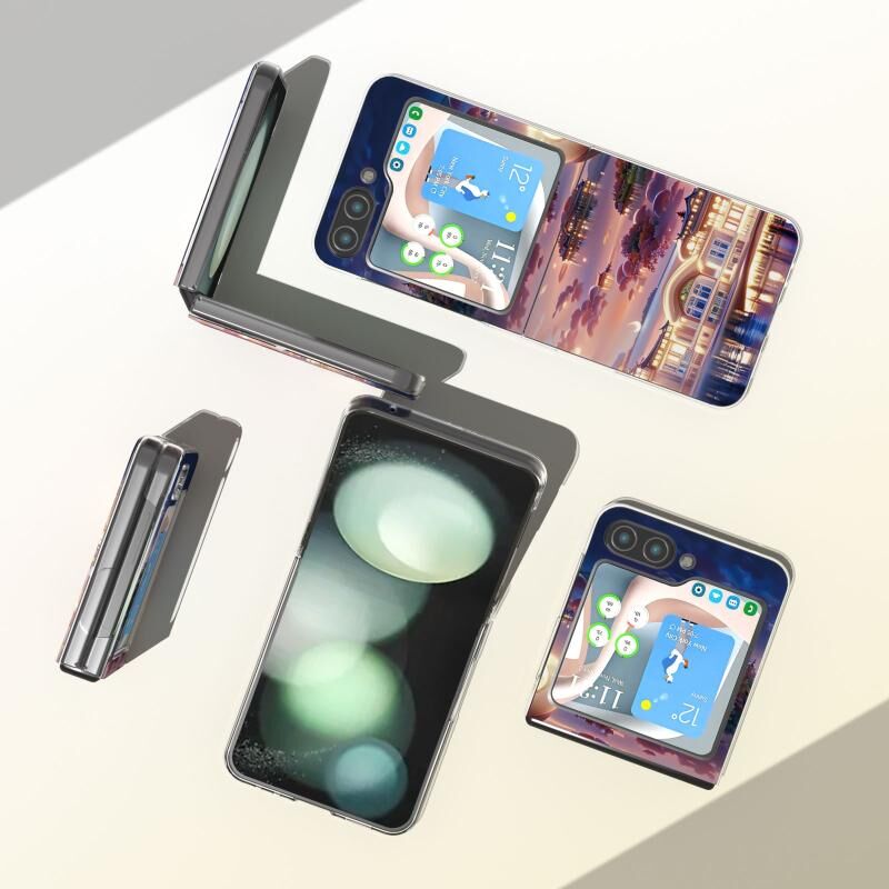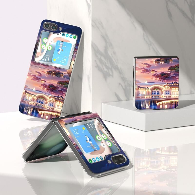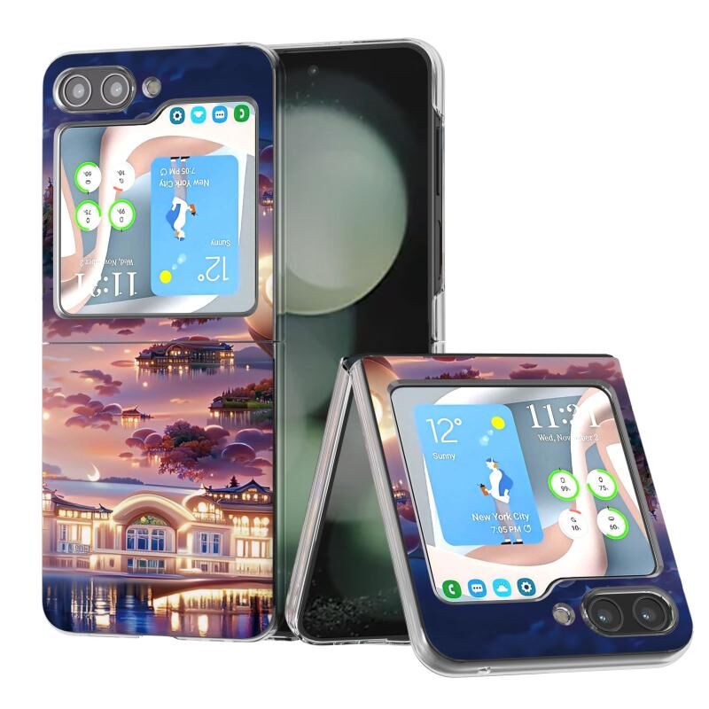 For Samsung Galaxy Z Flip5 Painted Pattern PC Phone Case(Moon Tower)
