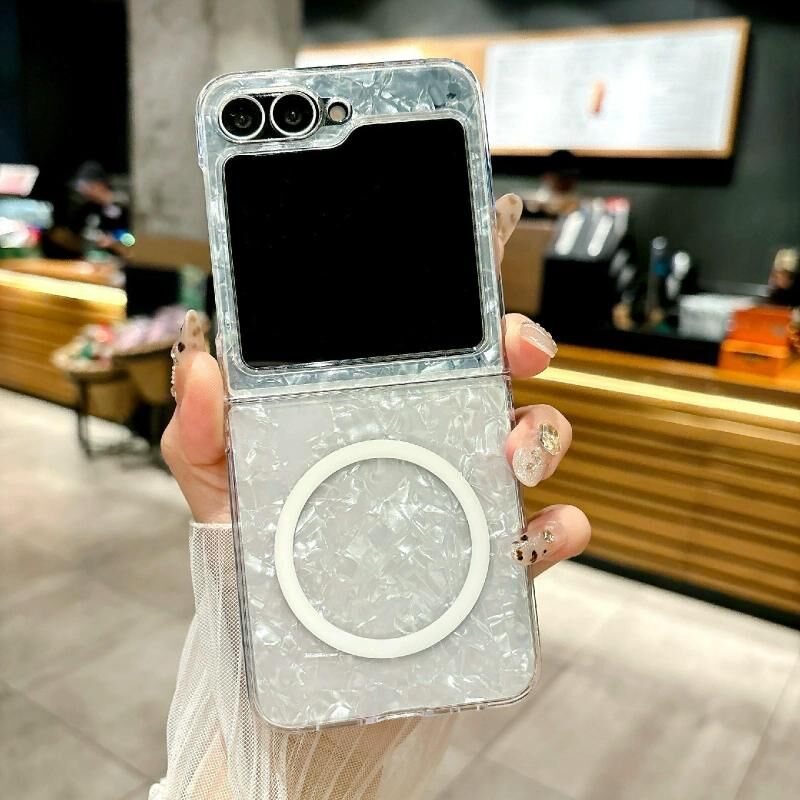 For Samsung Galaxy Z Flip5 Pearlescent Shell Texture MagSafe Phone Case(White)