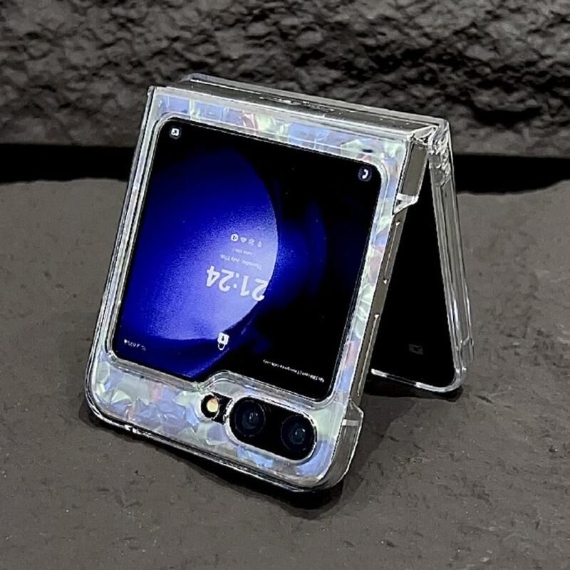 Για το Samsung Galaxy Z Flip5 Pearlescent Shell Υφή υπόθεση τηλεφώνου (μπεζ)