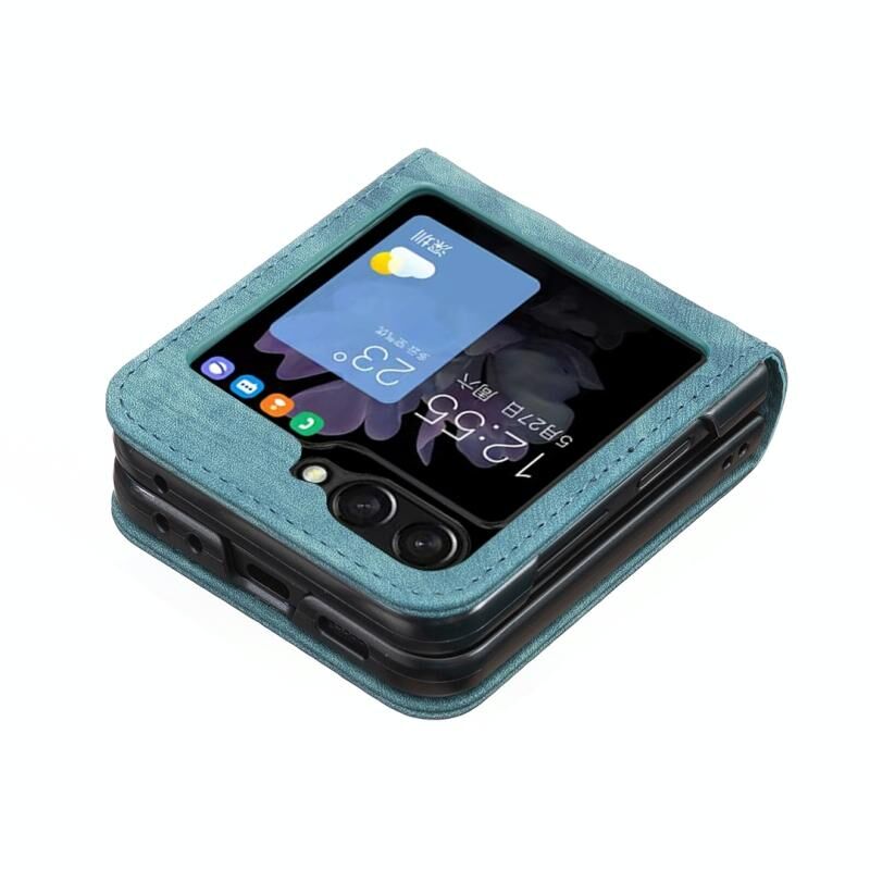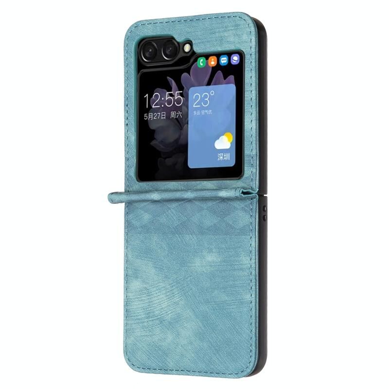 Για Samsung Galaxy Z Flip5 καρό ανάγλυφη δερμάτινη θήκη τηλεφώνου (πράσινο)