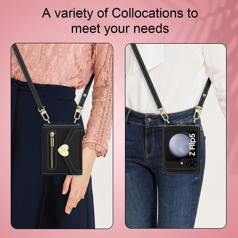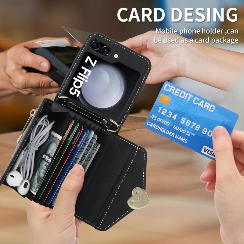 Για Samsung Galaxy Z Flip5 POLA αγάπη πόρπη Multi-Card Slots φερμουάρ πορτοφόλι θήκη τηλεφώνου (μαύρο) (POLA)