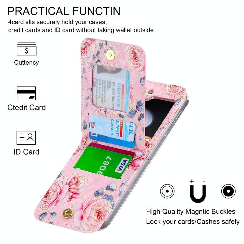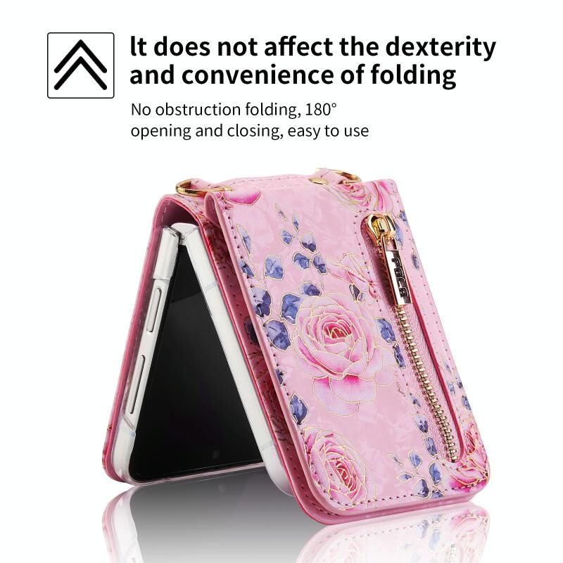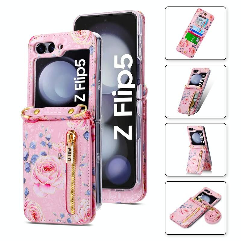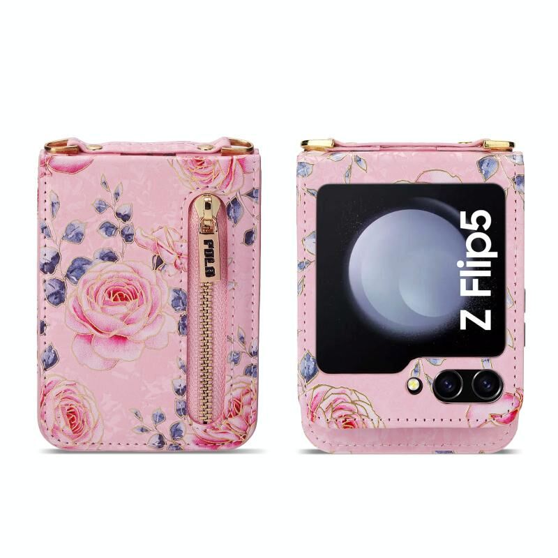 Για Samsung Galaxy Z Flip5 POLA Rose μοτίβο πολλαπλών καρτών υποδοχές φερμουάρ πορτοφόλι υπόθεση τηλεφώνου (ροζ) (POLA)