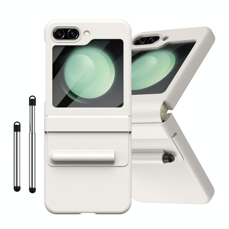 Για Samsung Galaxy Z Flip5 PU + PC πλήρους κάλυψης υπόθεση τηλεφώνου με στυλό / υποδοχές στυλό (λευκό)