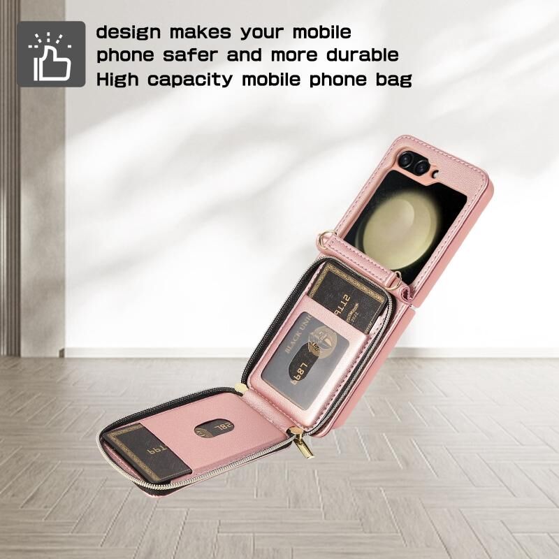 Για Samsung Galaxy Z Flip5 Rhombic πλήρη φερμουάρ πορτοφόλι δερμάτινη θήκη τηλεφώνου (Rose Gold)