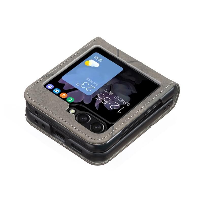 Θήκη κινητού τηλεφώνου για Samsung Galaxy Z Flip5 με υφή ρόμβου από PU + PC ανθεκτική στις κρούσεις (Μαύρο)