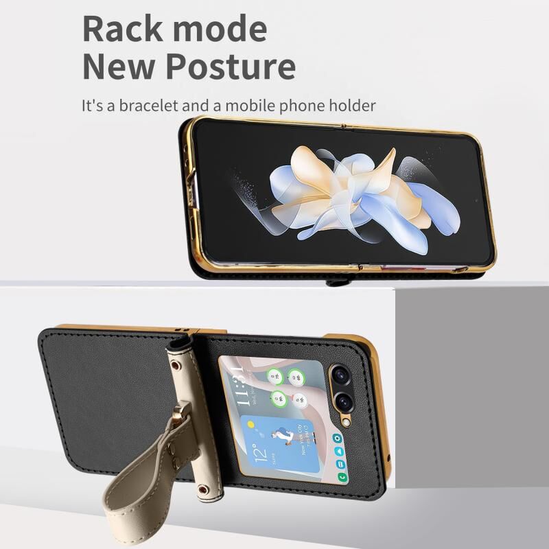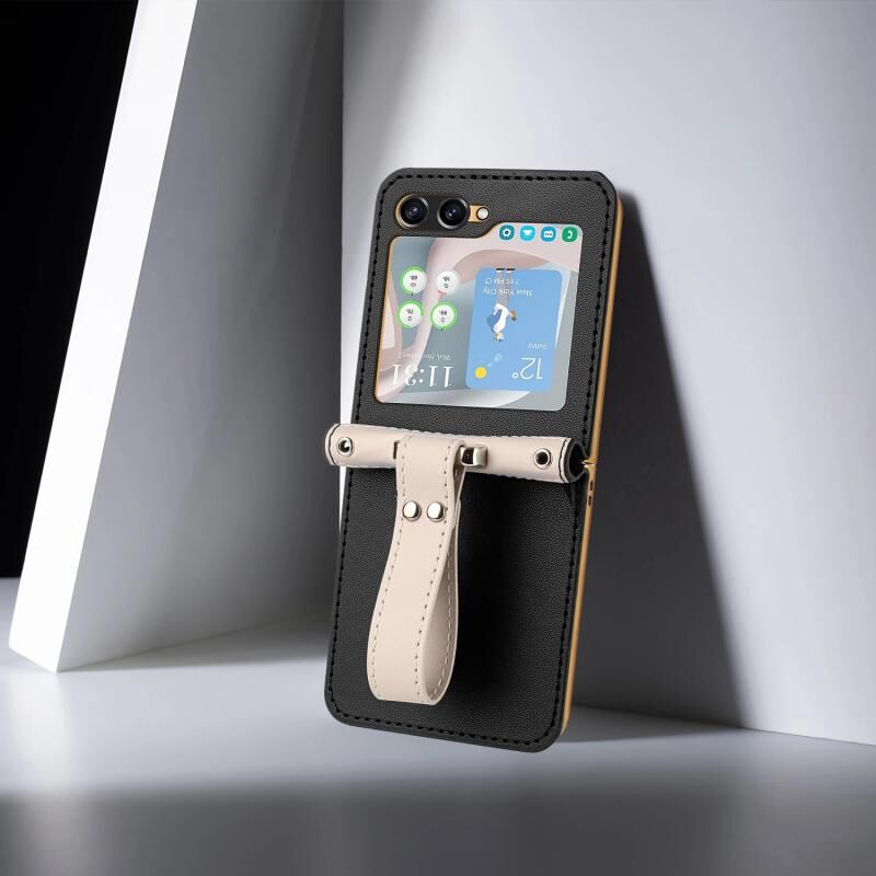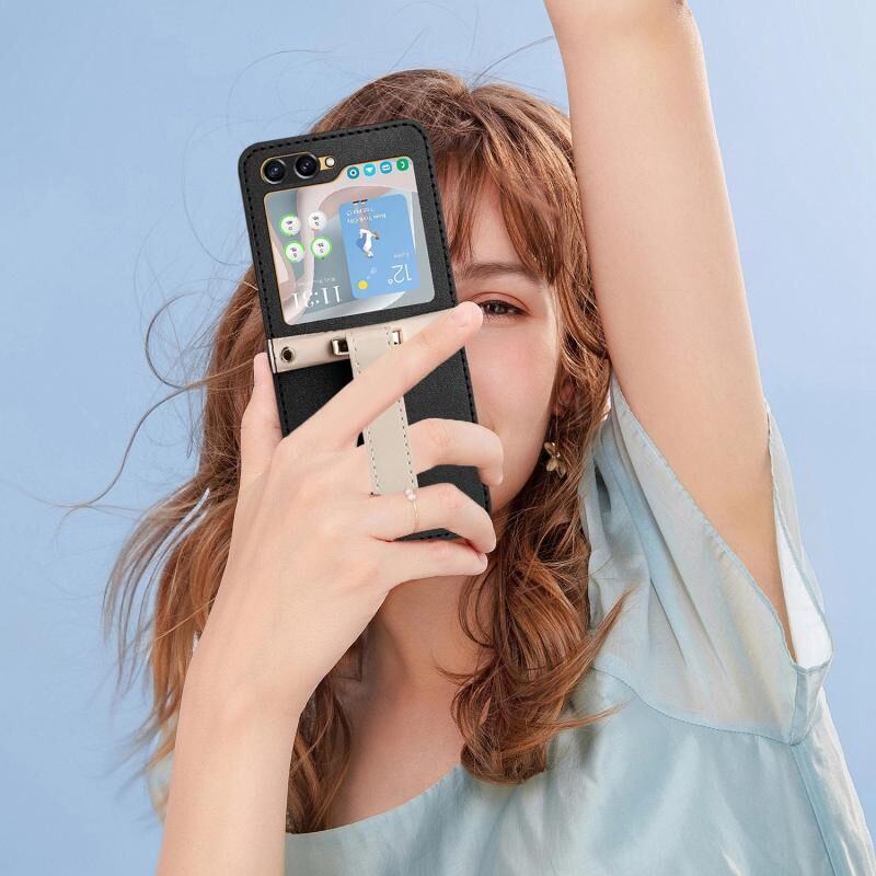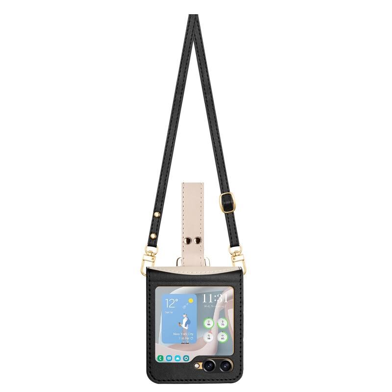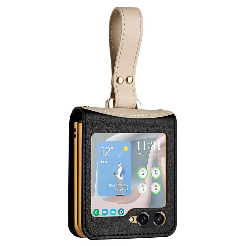 For Samsung Galaxy Z Flip5 Skin Feel Full Coverage Crossbody Phone Case with Hand Strap/Lanyard(Black)