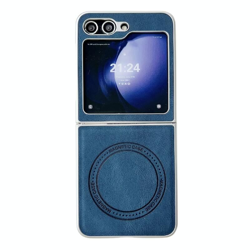 Θήκη κινητού τηλεφώνου για Samsung Galaxy Z Flip5 με υφή δέρματος, αίσθηση αφής, MagSafe, μαργαριταρένια βαφή, αντικραδασμική προστασία (Μπλε)