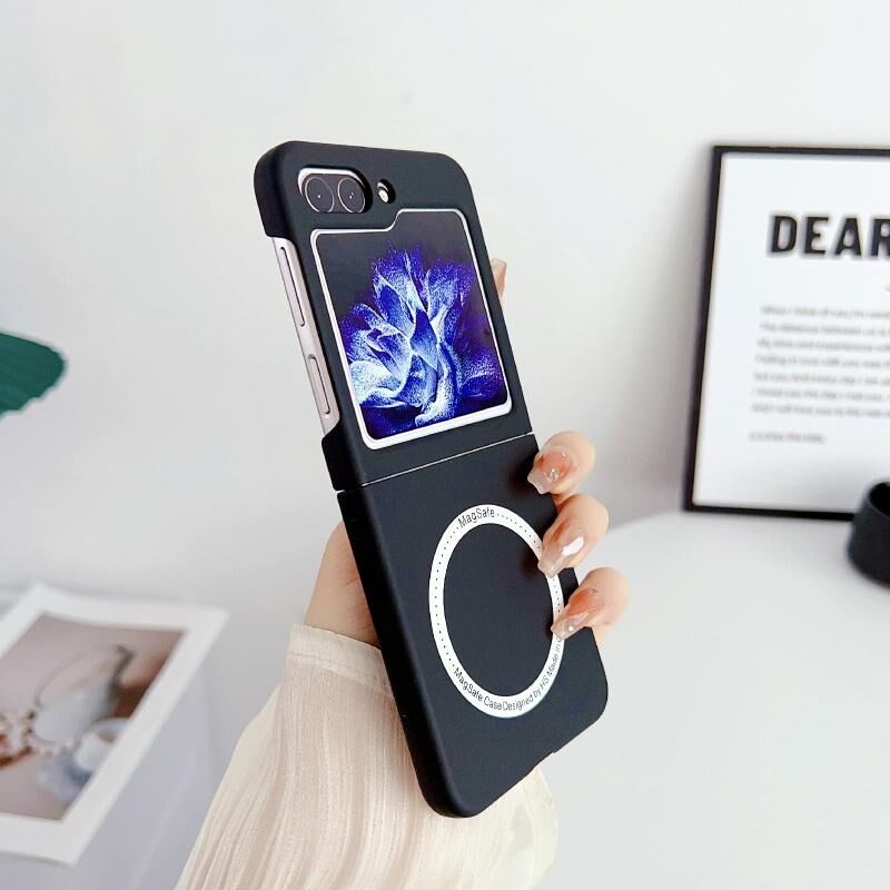 Θήκη κινητού Samsung Galaxy Z Flip5 με αίσθηση δέρματος, MagSafe, μαγνητική, αντικραδασμική, από PC (Μωβ)