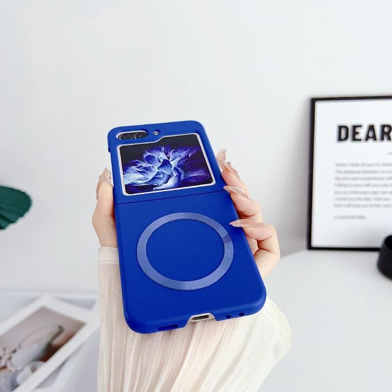 Θήκη κινητού Samsung Galaxy Z Flip5 με αίσθηση δέρματος, MagSafe, μαγνητική, αντικραδασμική, από PC (Μωβ)