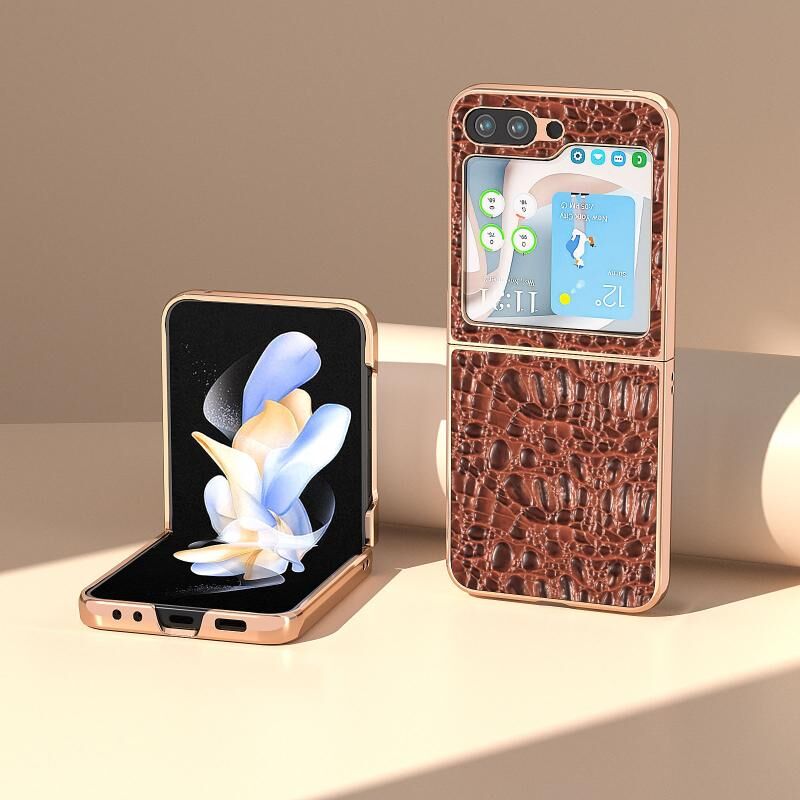 Θήκη τηλεφώνου από γνήσιο δέρμα με νανο-επίχρυση για Samsung Galaxy Z Flip5 Σειρά Sky (Καφέ)