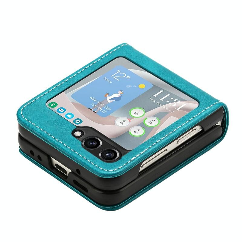 Για το Samsung Galaxy Z Flip5 Αμιγές χρώμα μοσχάρι υφή πτυσσόμενο δέρμα τηλέφωνο υπόθεση (πράσινο)