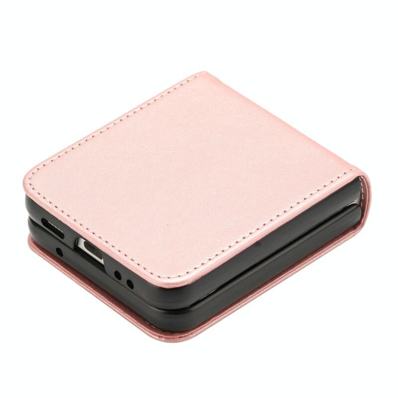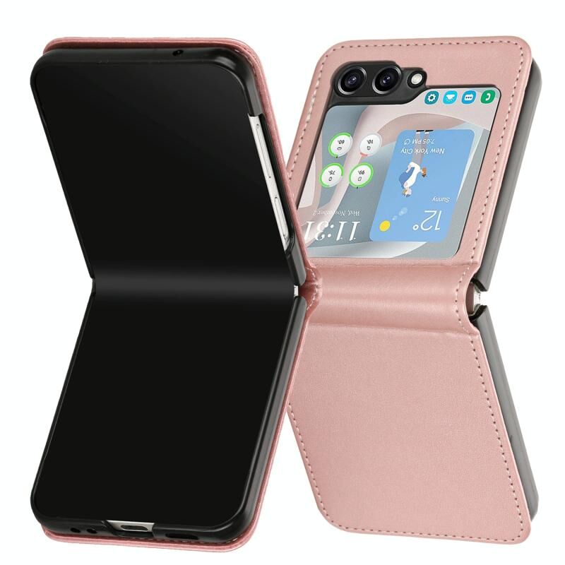 Για το Samsung Galaxy Z Flip5 Solid Color μοσχάρι υφή πτυσσόμενο δέρμα τηλέφωνο υπόθεση (Rose Gold)