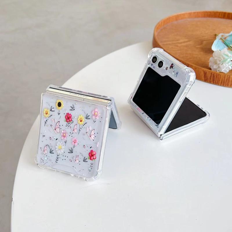 Θήκη κινητού Samsung Galaxy Z Flip5 Spring Garden Epoxy TPU (F06 Μπλε & Λευκά Λουλούδια)