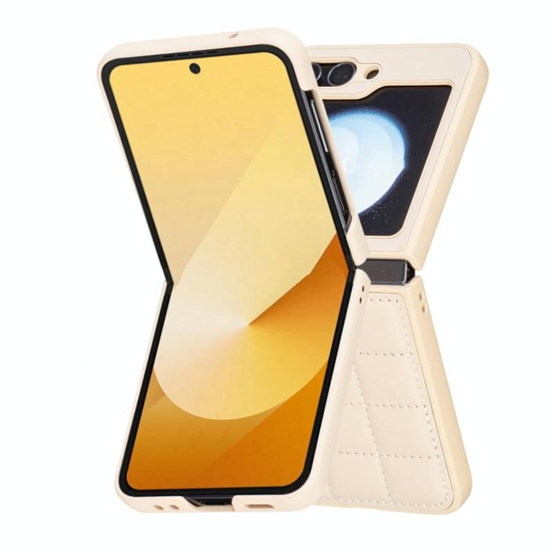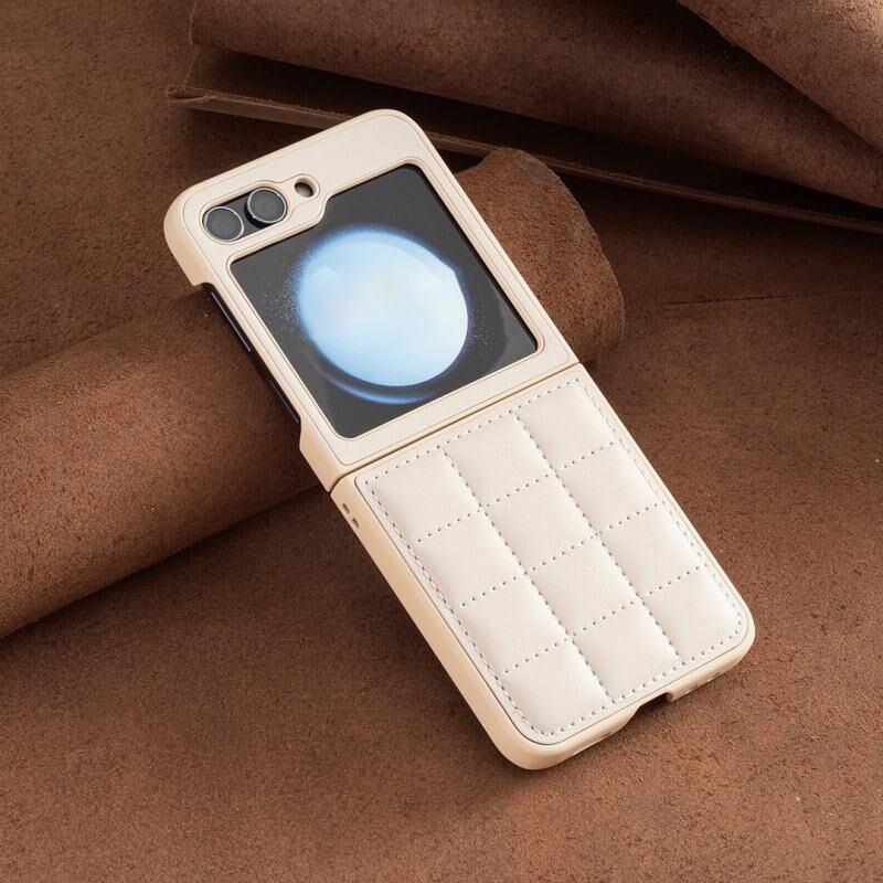 Για Samsung Galaxy Z Flip5 τετράγωνο σχήμα δέρμα πίσω κάλυμμα θήκη τηλεφώνου (Μπεζ)