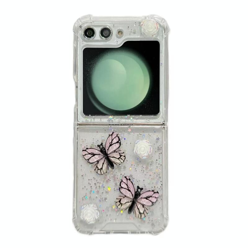 Θήκη τηλεφώνου TPU με τρισδιάστατη πεταλούδα και γκλίτερ για Samsung Galaxy Z Flip5 (Μπλε)