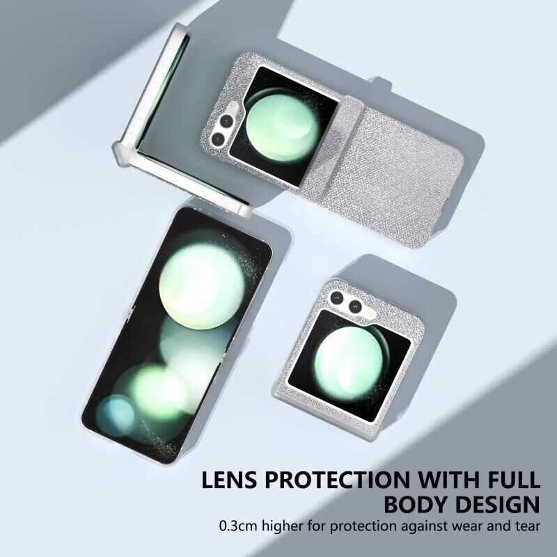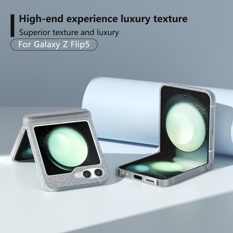 Θήκη τηλεφώνου διαμαντιών με ημιδιαφανές, ματ πλαίσιο τριών τμημάτων για Samsung Galaxy Z Flip5 (Μαύρο)