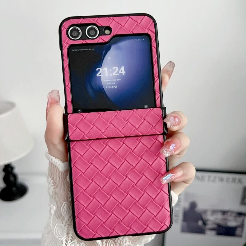 Σετ τριών τεμαχίων για Samsung Galaxy Z Flip5, θήκη τηλεφώνου από πλεγμένο υφή, αναδιπλούμενο PU (Χρυσό)