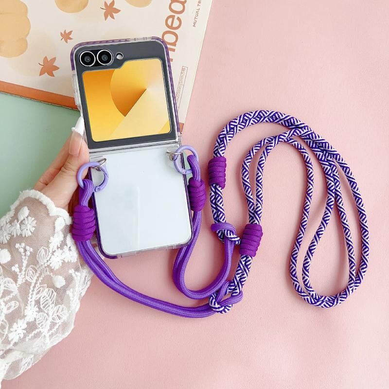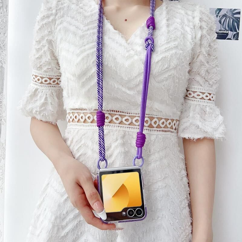 Για Samsung Galaxy Z Flip5 TPU Μακαρόνι μεντεσέ τηλέφωνο υπόθεση με 3 σε 1 σχοινί σταυρό σώμα (μωβ)