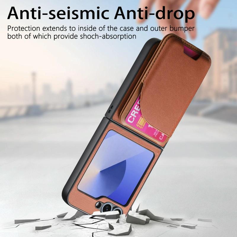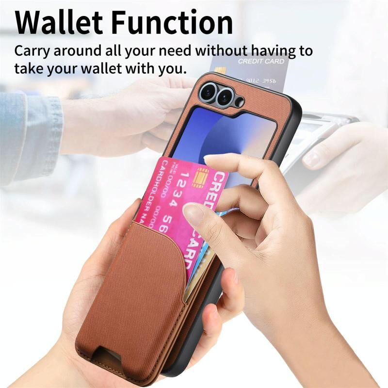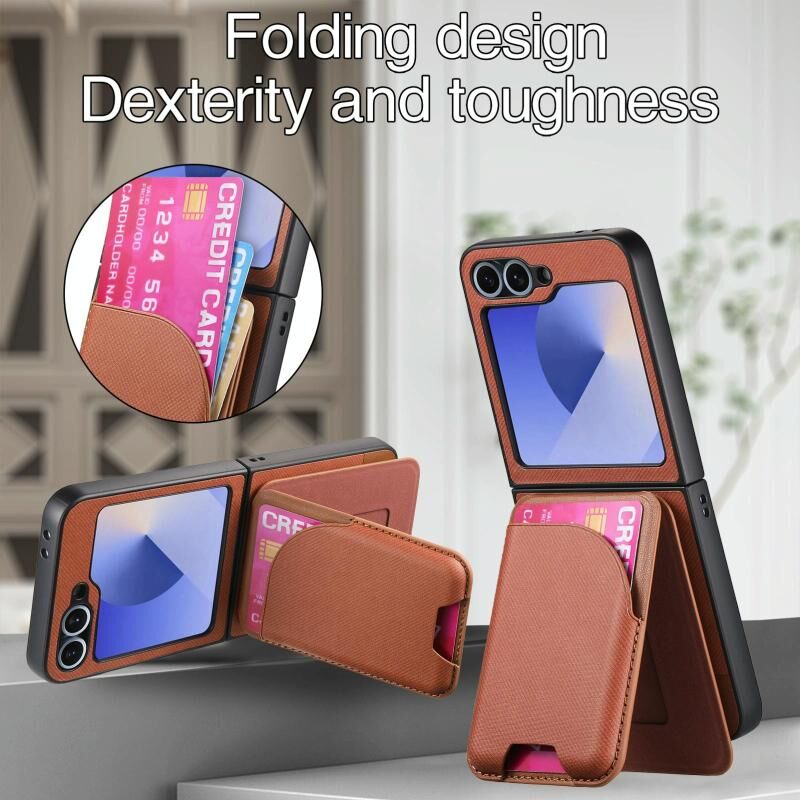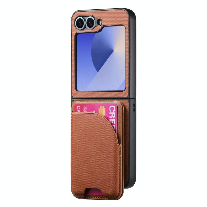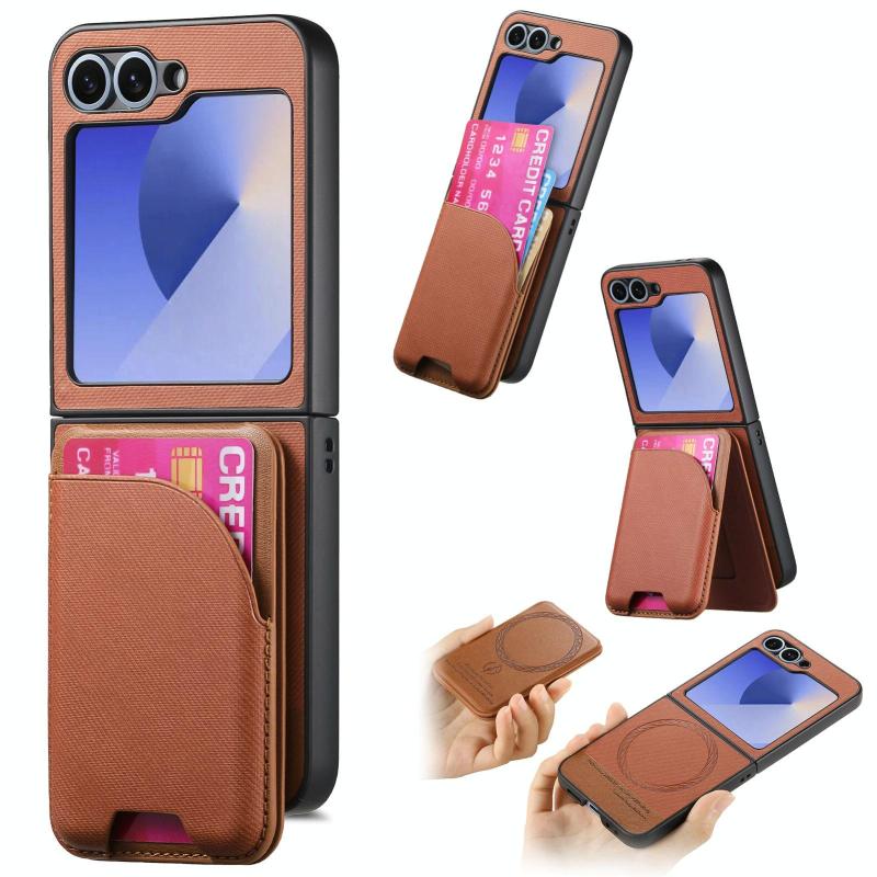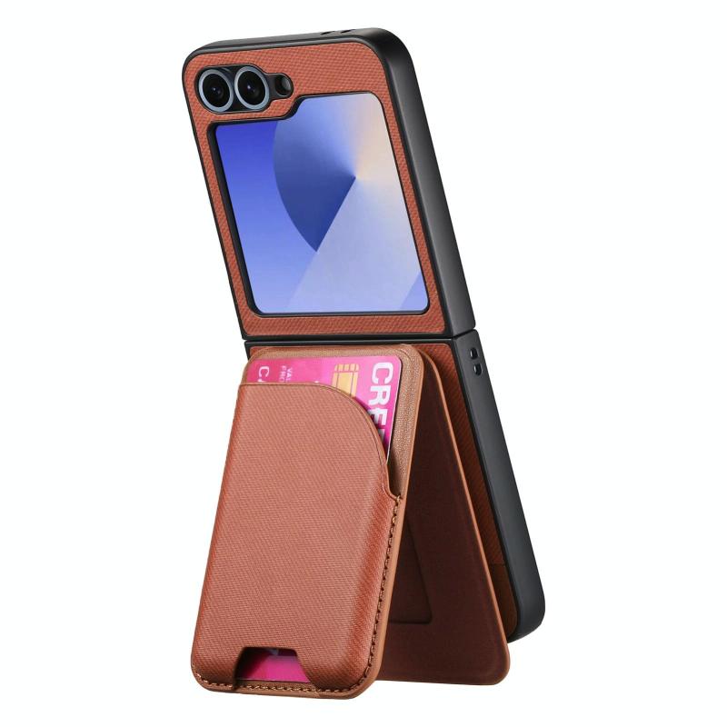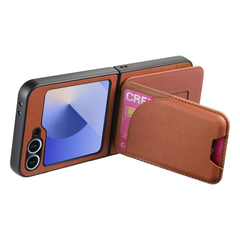 Για Samsung Galaxy Z Flip5 Θήκη Δερμάτινη με Ύφασμα & Κάρτες Μαγνητική (Καφέ)