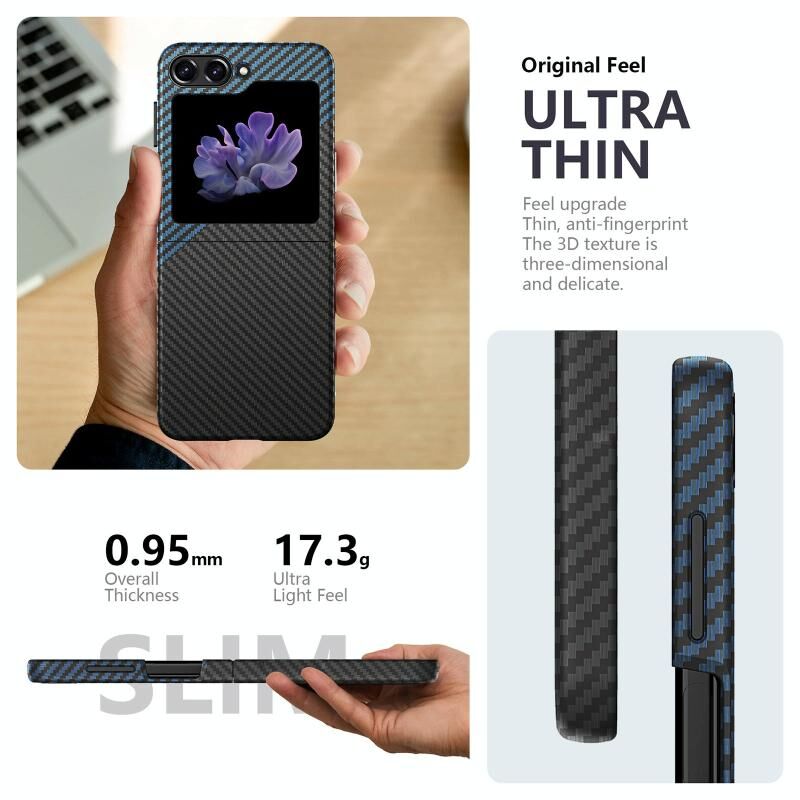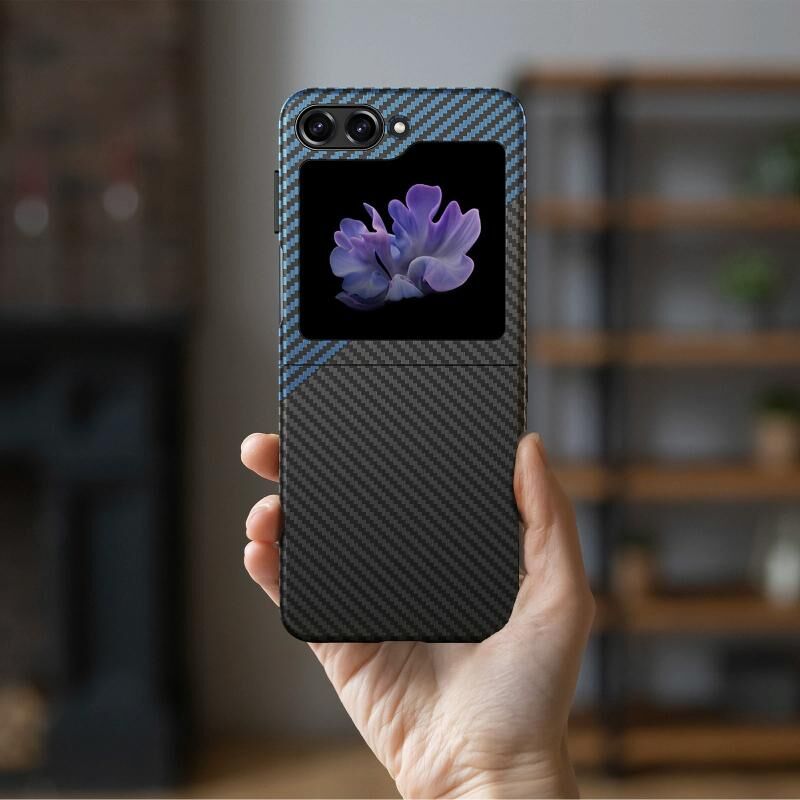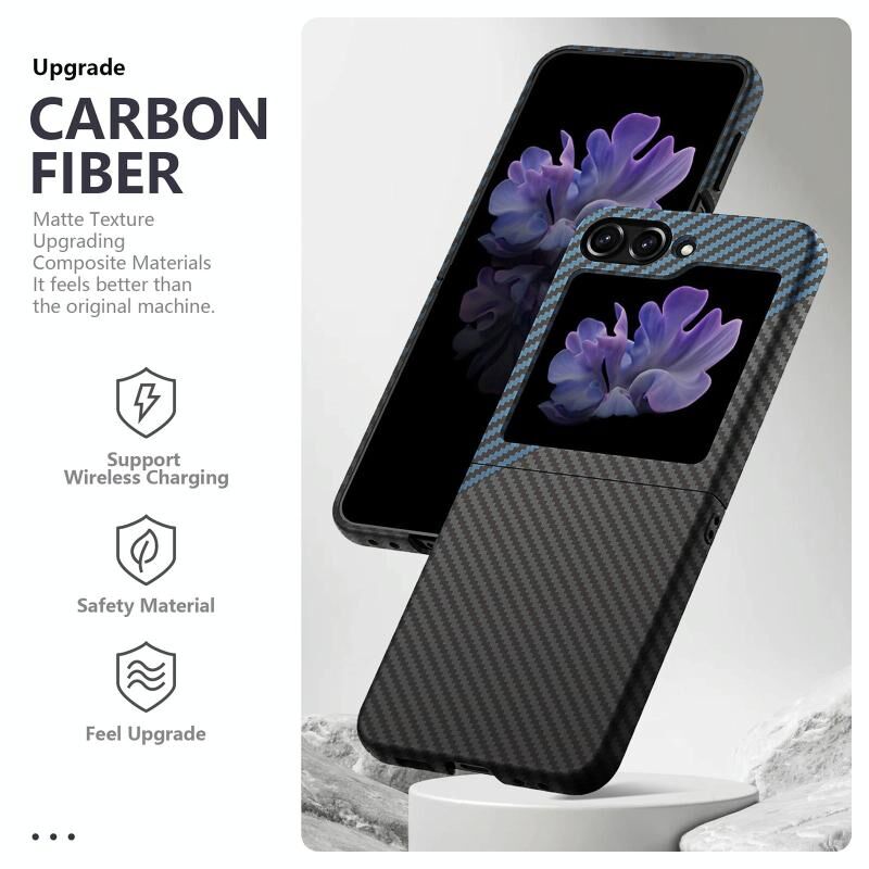 Για Samsung Galaxy Z Flip5 Αυτοκόλλητο Νερού Θήκη PC για Αναδιπλούμενο Τηλέφωνο (Μαύρο Ανθρακονήματα)