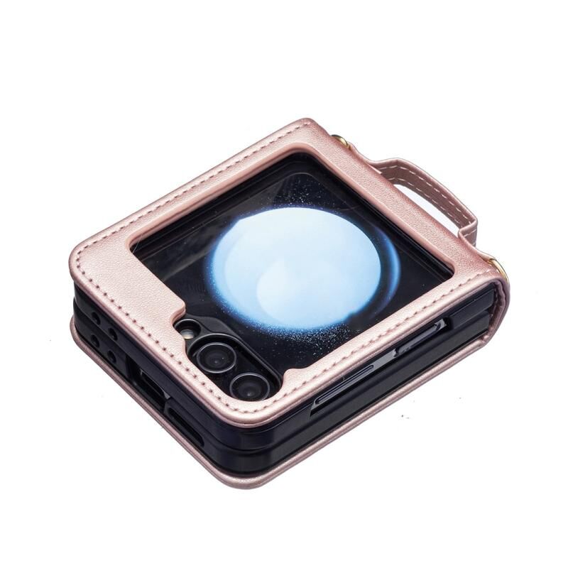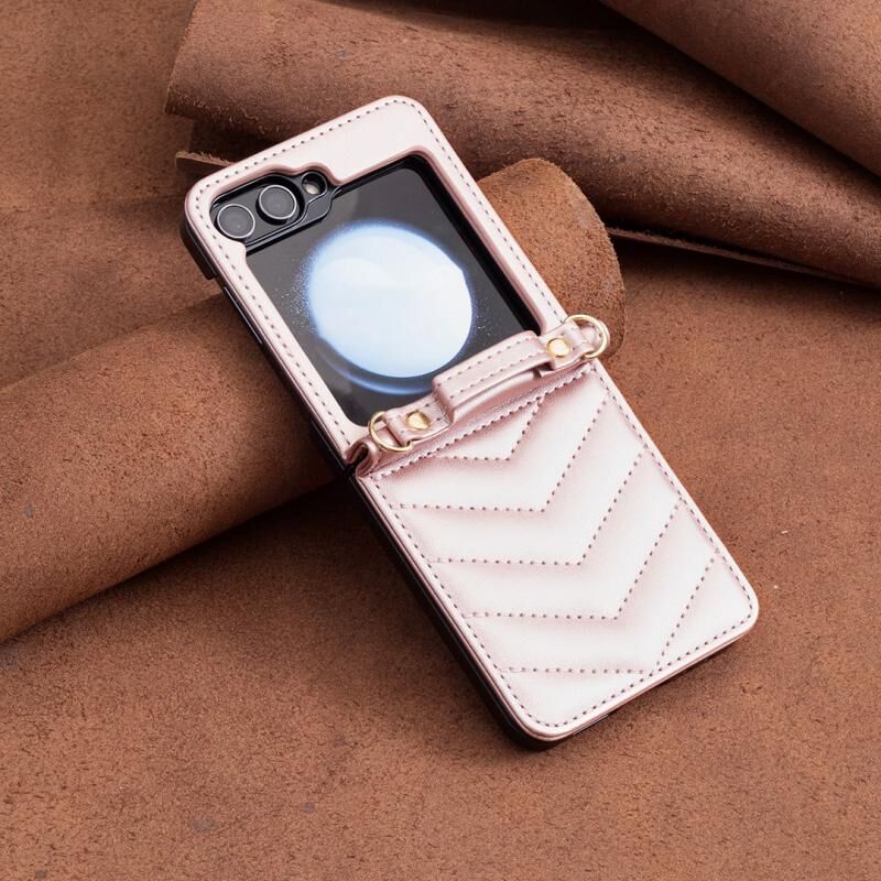 Για Samsung Galaxy Z Flip5 Wave-shaped Crossbody Lanyard δέρμα τηλέφωνο υπόθεση (Rose Gold)