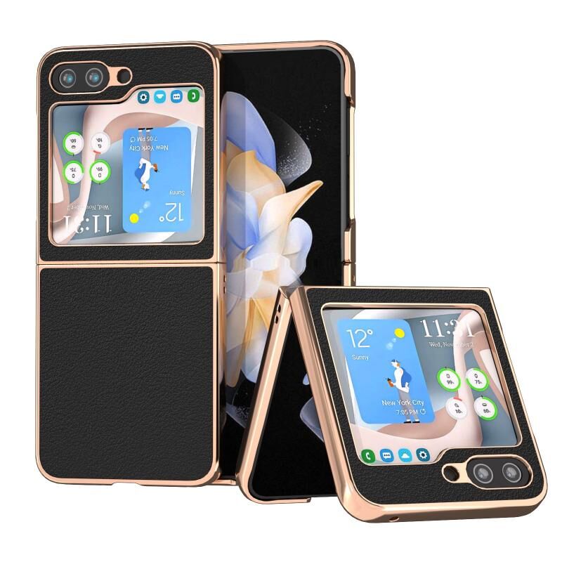 Θήκη τηλεφώνου Samsung Galaxy Z Flip5 Waves Series Nano Electroplating Genuine Leather (Μπλε)