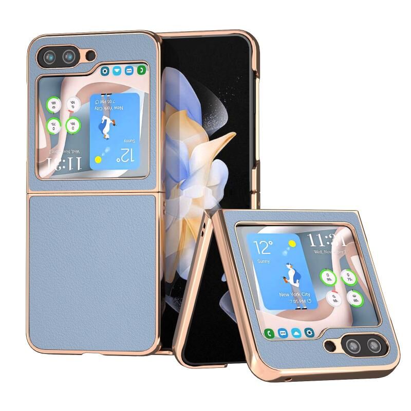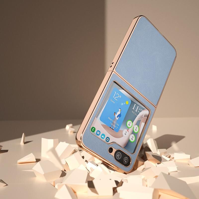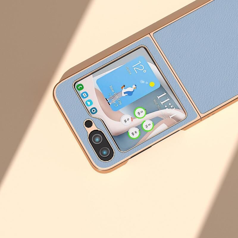 Θήκη τηλεφώνου Samsung Galaxy Z Flip5 Waves Series Nano Electroplating Genuine Leather (Μπλε)