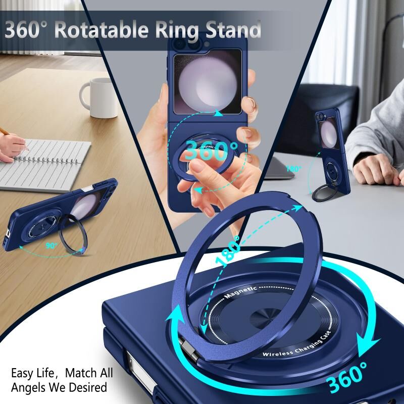 Θήκη κινητού Samsung Galaxy Z Flip6 360° περιστρεφόμενη βάση δακτυλιδιού MagSafe ανθεκτική στις κρούσεις από PC (Royal Blue)