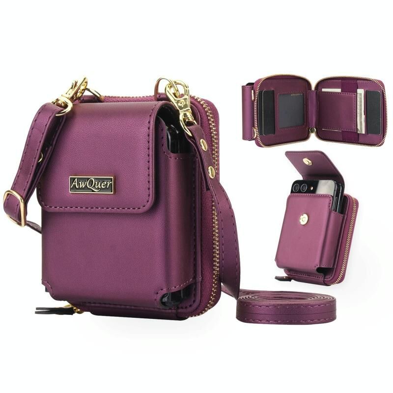 Για Samsung Galaxy Z Flip6 /5 /4 /3 AwQuer AW005 Θήκη Τσάντας Δερμάτινη, Διαγώνια (Μαύρο) (Awquer)