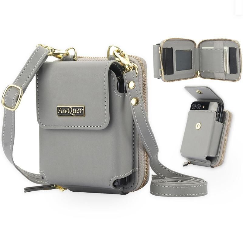 Για Samsung Galaxy Z Flip6 /5 /4 /3 AwQuer AW005 Θήκη Τσάντας Δερμάτινη, Διαγώνια (Μαύρο) (Awquer)
