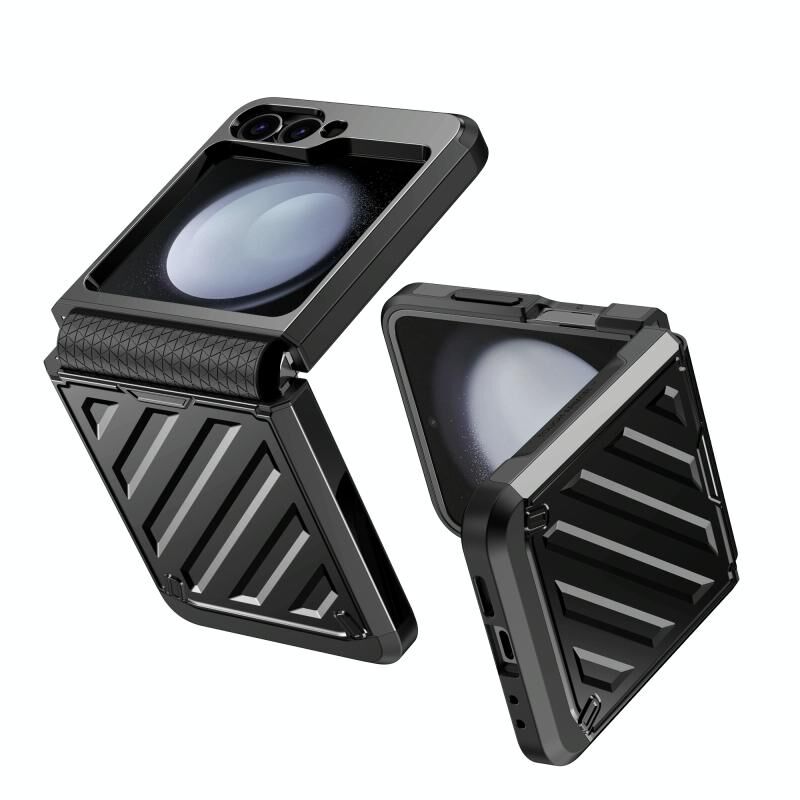 Για Samsung Galaxy Z Flip6 5G 2 σε 1 χρώμα αντίθεση TPU υβριδικό PC τηλέφωνο υπόθεση (μαύρο)