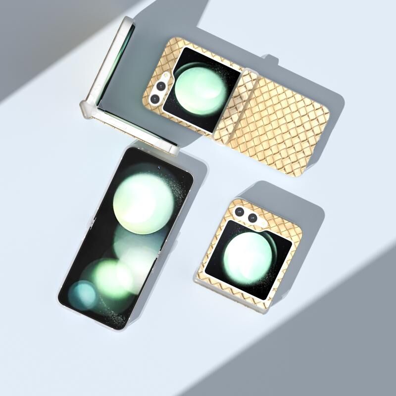 Για το Samsung Galaxy Z Flip6 5G 3 σε 1 υφασμάτινη υφή παγωμένο ημιδιαφανές πλαίσιο PU υπόθεση τηλεφώνου (χρυσό)