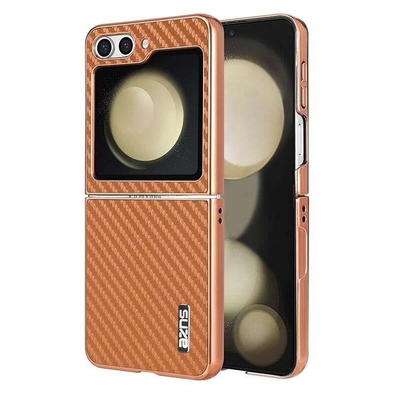 For Samsung Galaxy Z Flip6 5G AZNS Electroplated Edge Carbon Fiber Texture Phone Case(Brown) (AZNS)