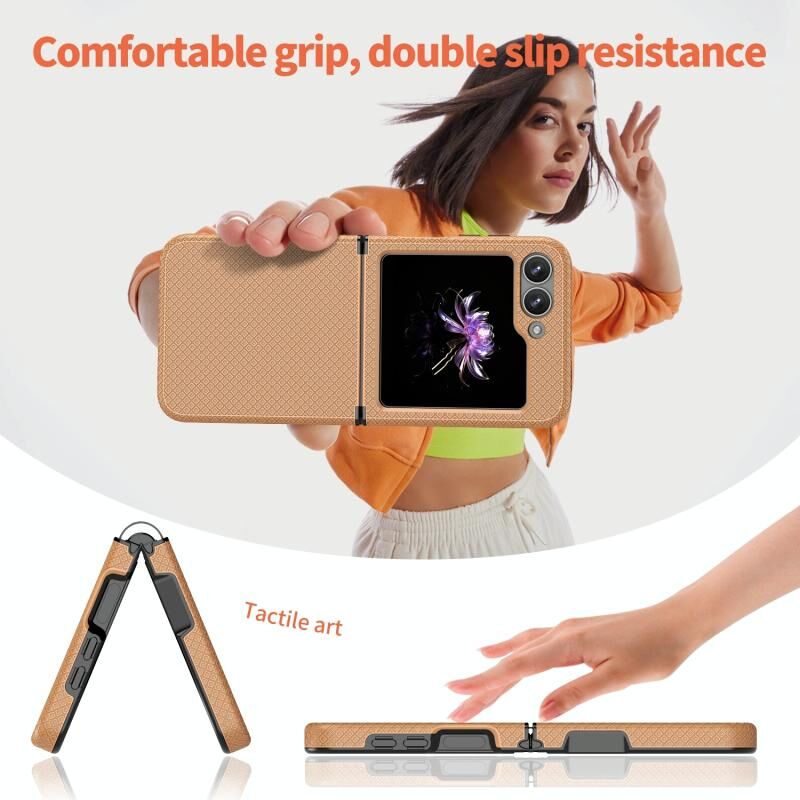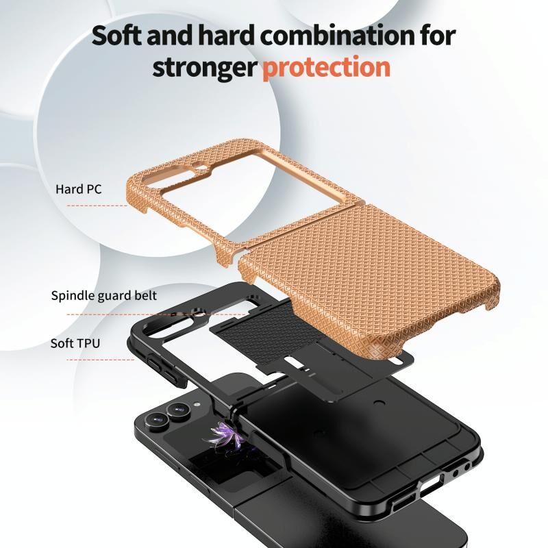 Για το Samsung Galaxy Z Flip6 5G 5G Checkered μοτίβο TPU + PC Shockproof υπόθεση τηλεφώνου (παστέλ ροδάκινο)