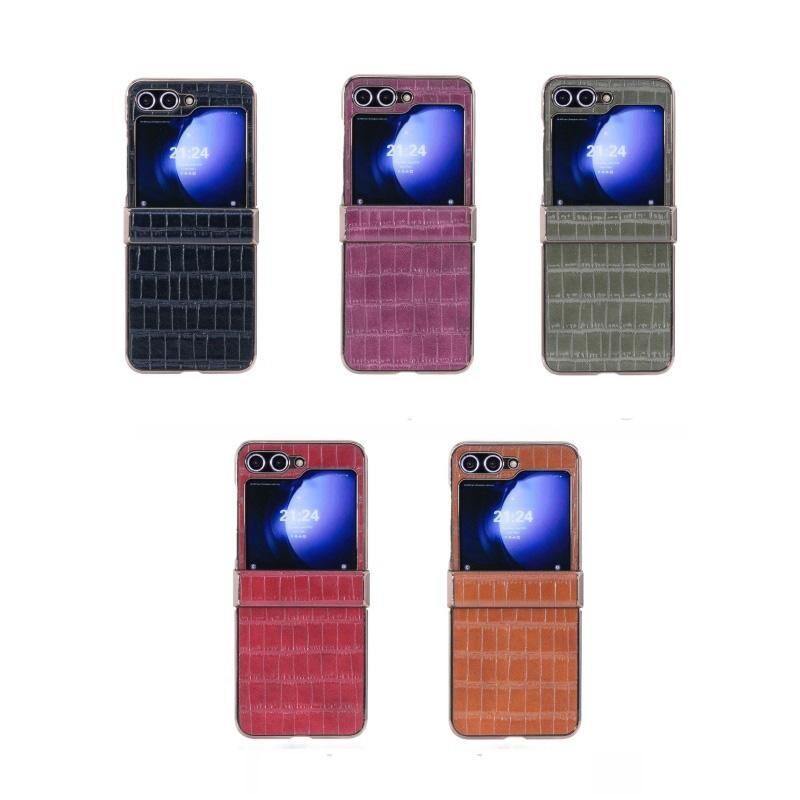 For Samsung Galaxy Z Flip6 5G Electroplated PC Crocodile Pattern Folding Phone Case(Black)