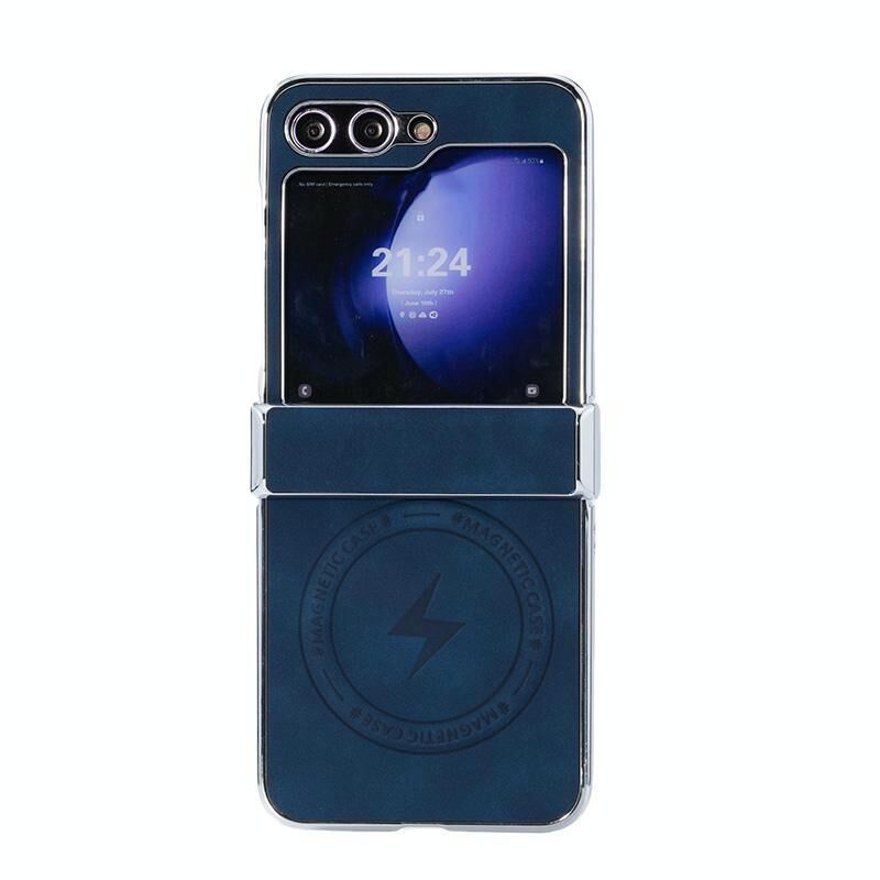For Samsung Galaxy Z Flip6 5G Electroplated PC Sheepskin Invisible Magnetic MagSafe Folding Phone Case(Blue)