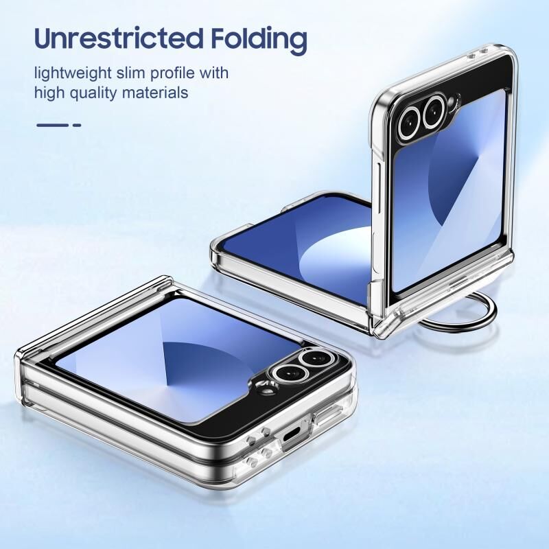 Θήκη τηλεφώνου με δακτύλιο για Samsung Galaxy Z Flip6 5G, πτυσσόμενη, με κεντρικό άξονα και θήκη καρτών (Λευκό)