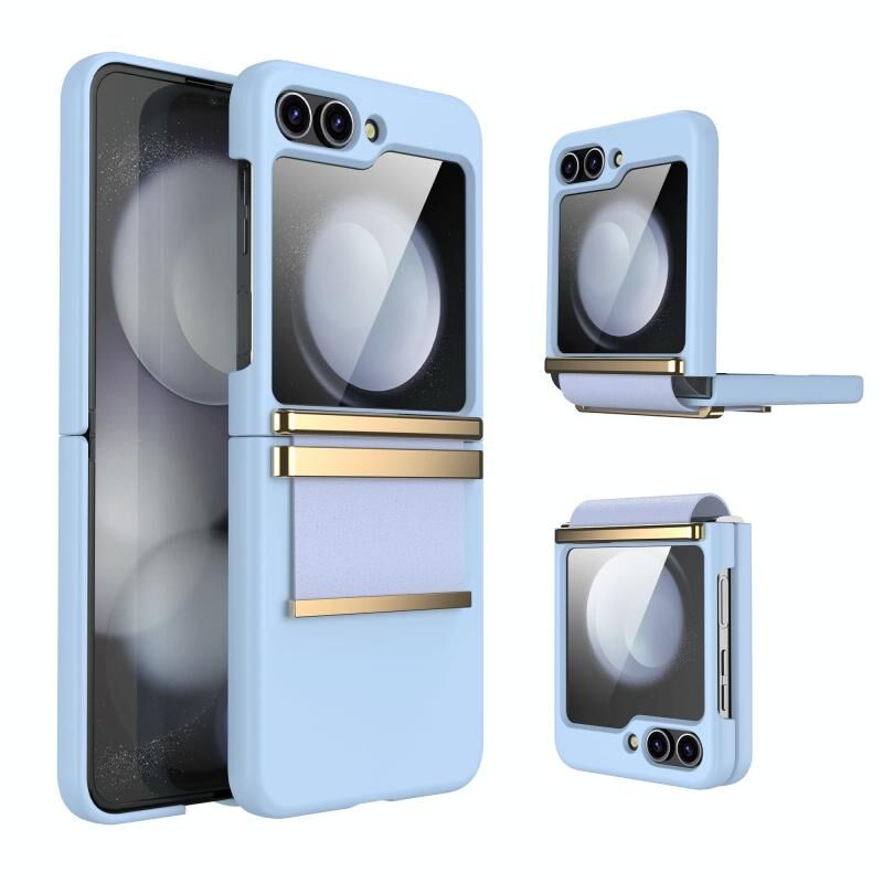 Για Samsung Galaxy Z Flip6 5G Hardware Πτυσσόμενο δέρμα Shockproof υπόθεση τηλεφώνου (Λεβάντα μπλε χρυσό)