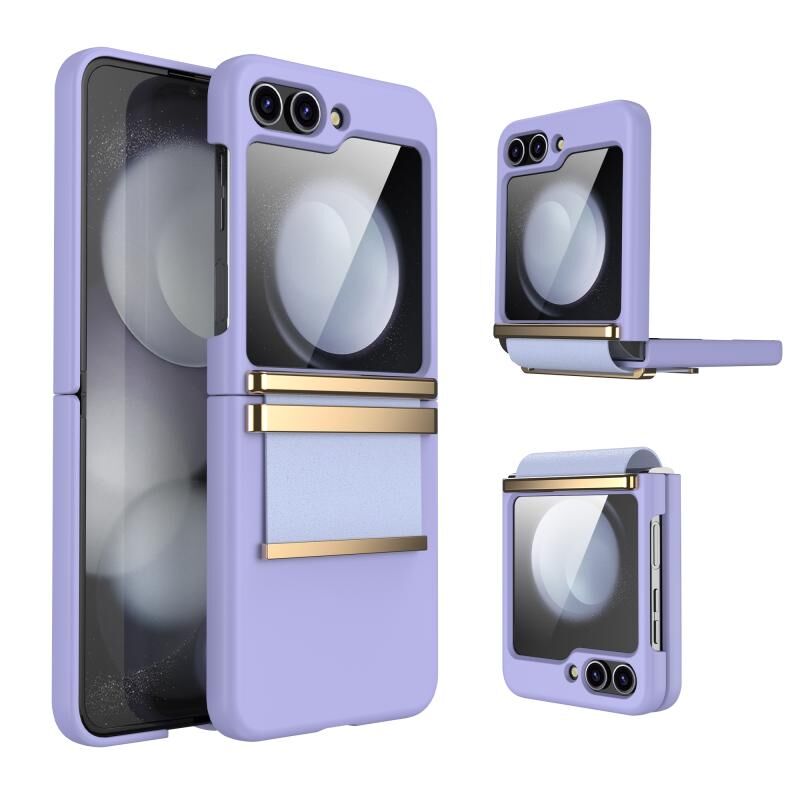 Για Samsung Galaxy Z Flip6 5G Hardware Πτυσσόμενο δέρμα Shockproof τηλέφωνο υπόθεση (μωβ χρυσό)