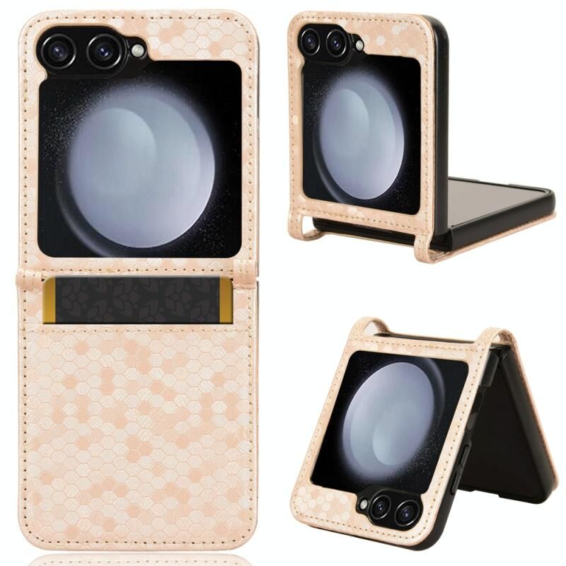 Για Samsung Galaxy Z Flip6 5G Honeycomb Dot Texture Δερμάτινη θήκη τηλεφώνου (Χρυσό)