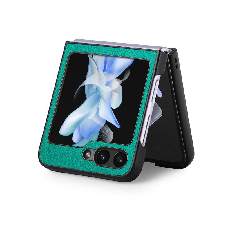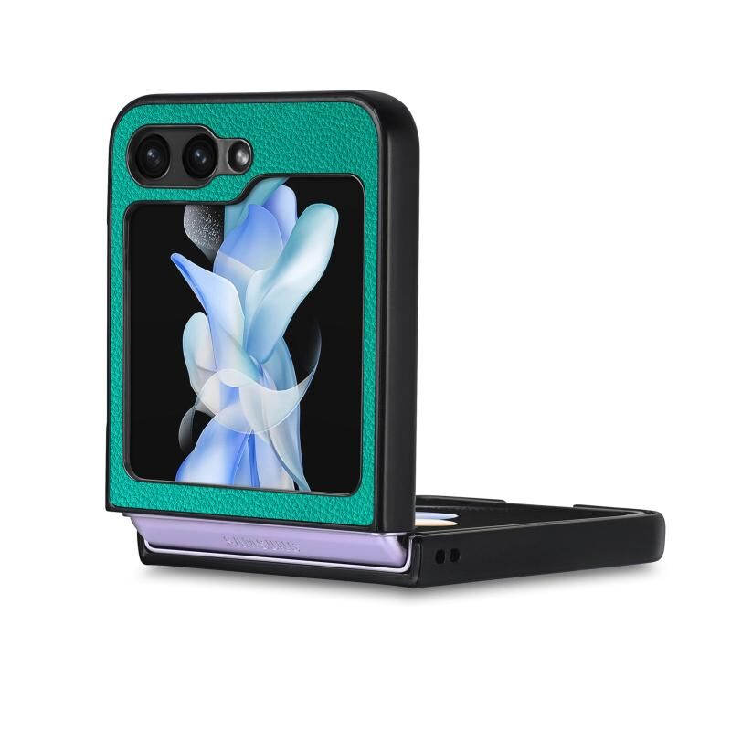 Για το Samsung Galaxy Z Flip6 5G Litchi υφή δέρμα Fold υπόθεση τηλεφώνου (πράσινο)