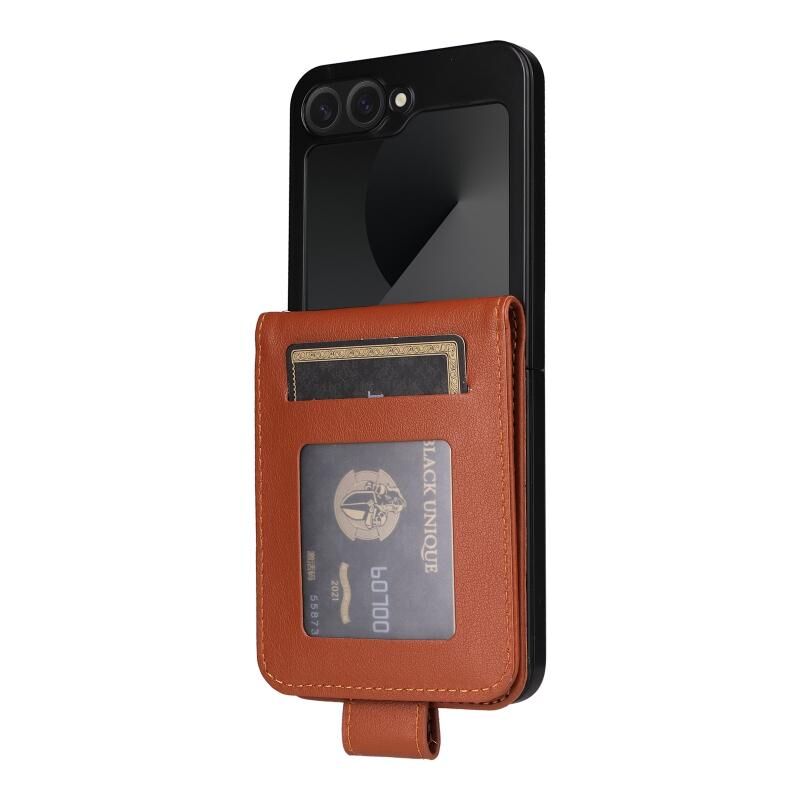 Για Samsung Galaxy Z Flip6 5G Πολυλειτουργική οριζόντια Flip δερμάτινη θήκη τηλεφώνου με τρεις υποδοχές για κάρτες (καφέ)