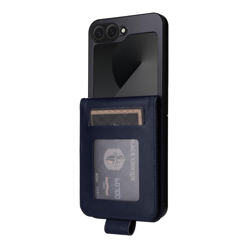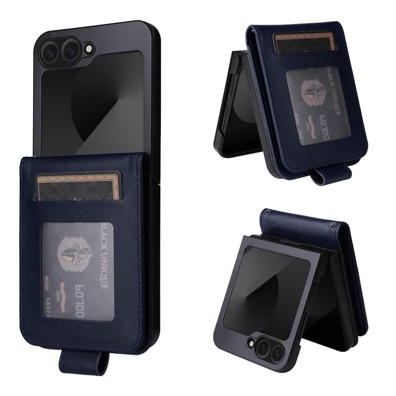 Για Samsung Galaxy Z Flip6 5G Πολυλειτουργική οριζόντια Flip δερμάτινη θήκη τηλεφώνου με τρεις υποδοχές για κάρτες (μπλε)